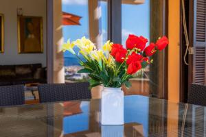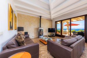 The spacious holiday home is equipped with 3 bedrooms, 2 bathrooms, bed linen, towels, a TV with satellite channels, a fully equipped kitchen, and a terrace with sea views. Guests can take in the views of the mountain from the balcony, which also has outdoor furniture. The accommodation offers a fireplace.