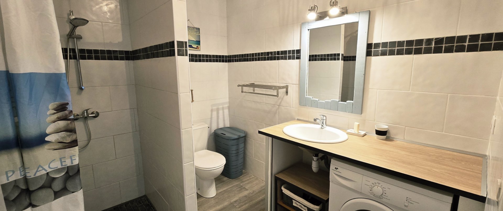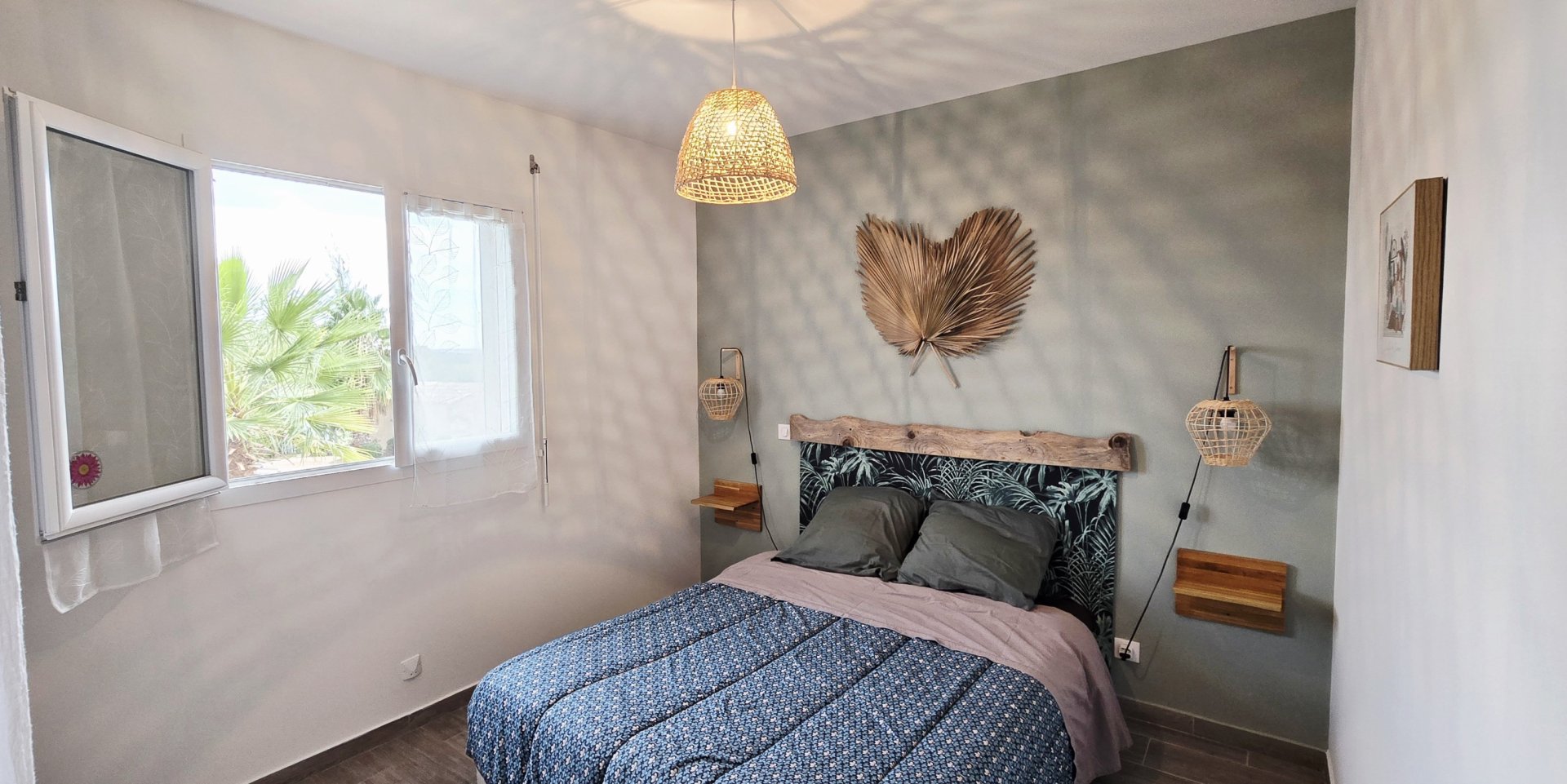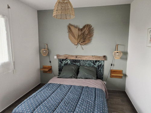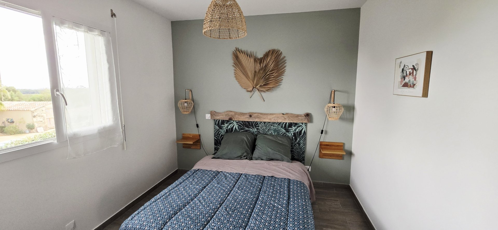 La location est composée de 2 chambres lits doubles et un canapé-lit dans le salon, une belle pièce de vie avec cuisine ouverte, une douche à l'italienne, climatisation, lave-vaisselle, lave-linge, barbecue, TV, WiFi, belle terrasse vue dégagée