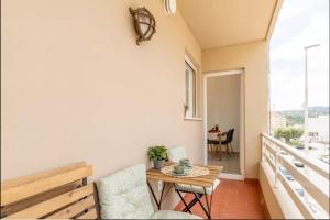 El apartamento cuenta con 2 dormitorios, 1 baño, ropa de cama, toallas, TV de pantalla plana, zona de comedor, cocina totalmente equipada y terraza con vistas a la ciudad.