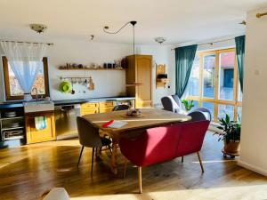 The spacious apartment is located on the ground floor and has 2 bedrooms, a flat-screen TV with streaming services and a fully equipped kitchen that provides guests with a dishwasher, an oven, a washing machine, a microwave and a toaster. Guests can take in the views of the mountain from the terrace, which also has outdoor furniture. For added privacy, the accommodation has a private entrance and soundproofing.