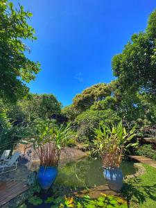In a central area of Ilhabela, located within a short distance of Praia de Santa Tereza and Cultural Center of Ilhabela, Casas D'Água Doce - Casa Cachoeira. Offers free WiFi, air conditioning and household amenities such as a stovetop and coffee machine. This holiday home features a pool with a view, a garden and free private parking. Ferryboat Port is 7.3 km away and Guna Marina is 3.4 km from the holiday home.