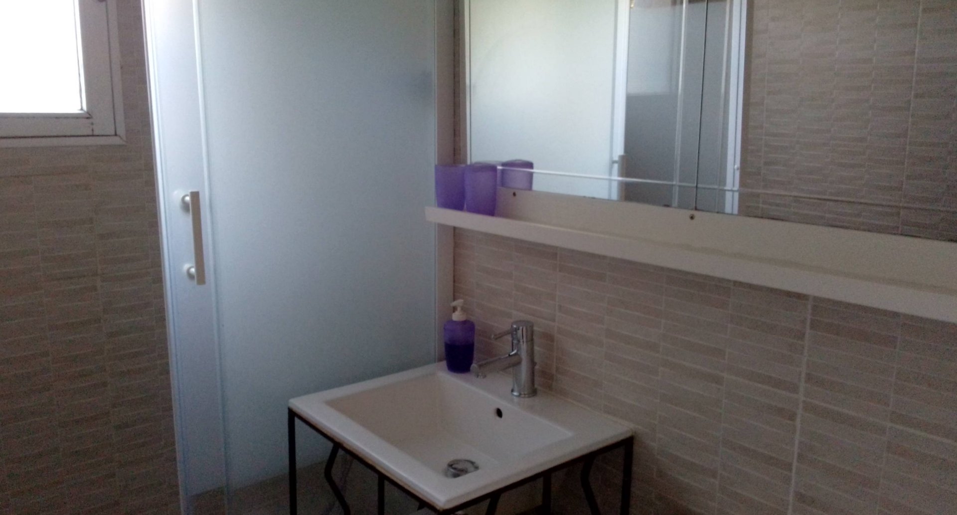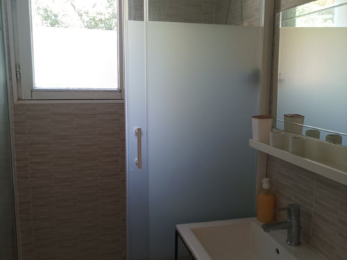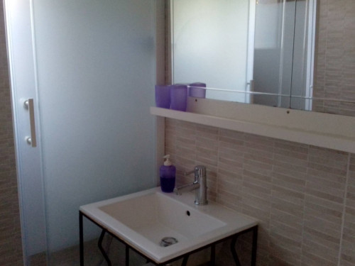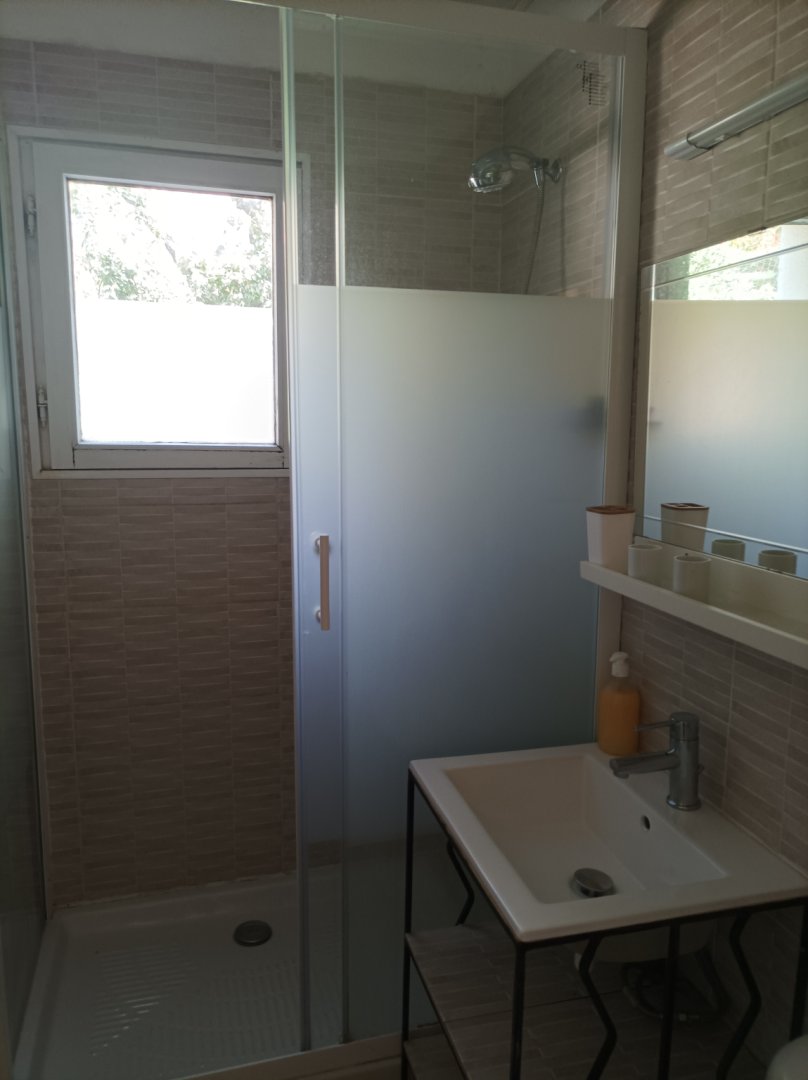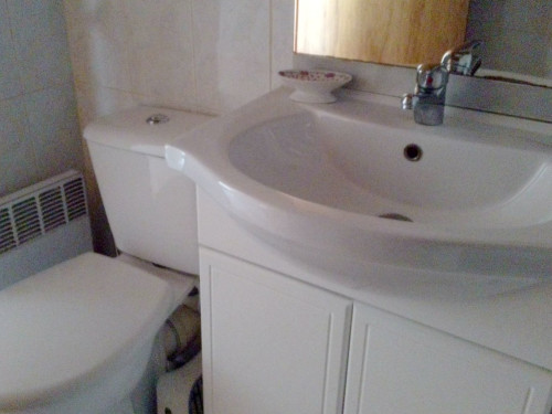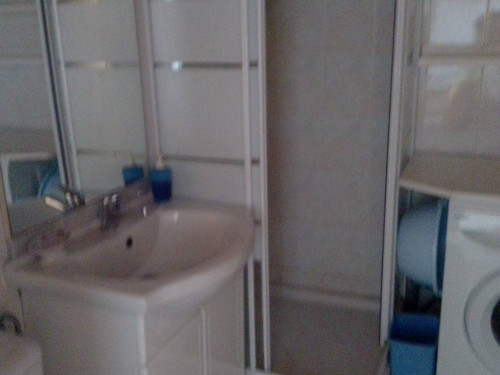 - salle d'eau avec WC, lave-linge, sèche-cheveux, table et fer à repasser, rangements