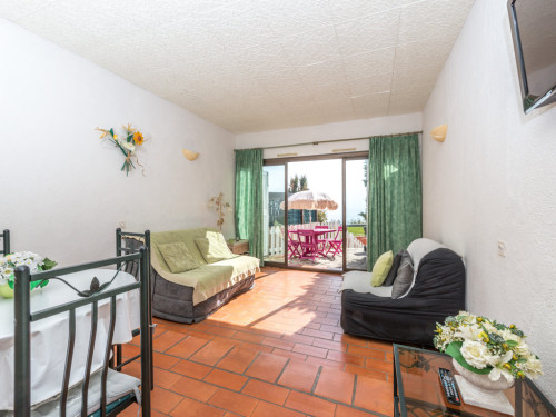 Séjour avec convertible en 140, chauffeuse en 80 et TV.