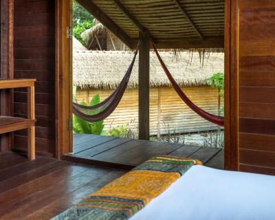 Aménagés sur 1 ou 2 niveaux, les bungalows en bois comprennent des matériaux naturels. Construits selon une architecture thaïlandaise, ils sont conçus pour capturer les brises naturelles de la mer. Ils disposent d'un ventilateur de plafond, d'une moustiquaire et d'une salle de bains privative avec douche.