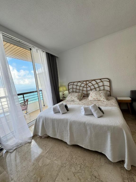 The apartment provides guests with a terrace, sea views, a seating area, a flat-screen TV, a fully equipped kitchen with a microwave and a toaster, and a private bathroom with shower and a hair dryer. A fridge, a stovetop and kitchenware are also featured, as well as a coffee machine and a kettle. At the apartment complex, the units are equipped with bed linen and towels.