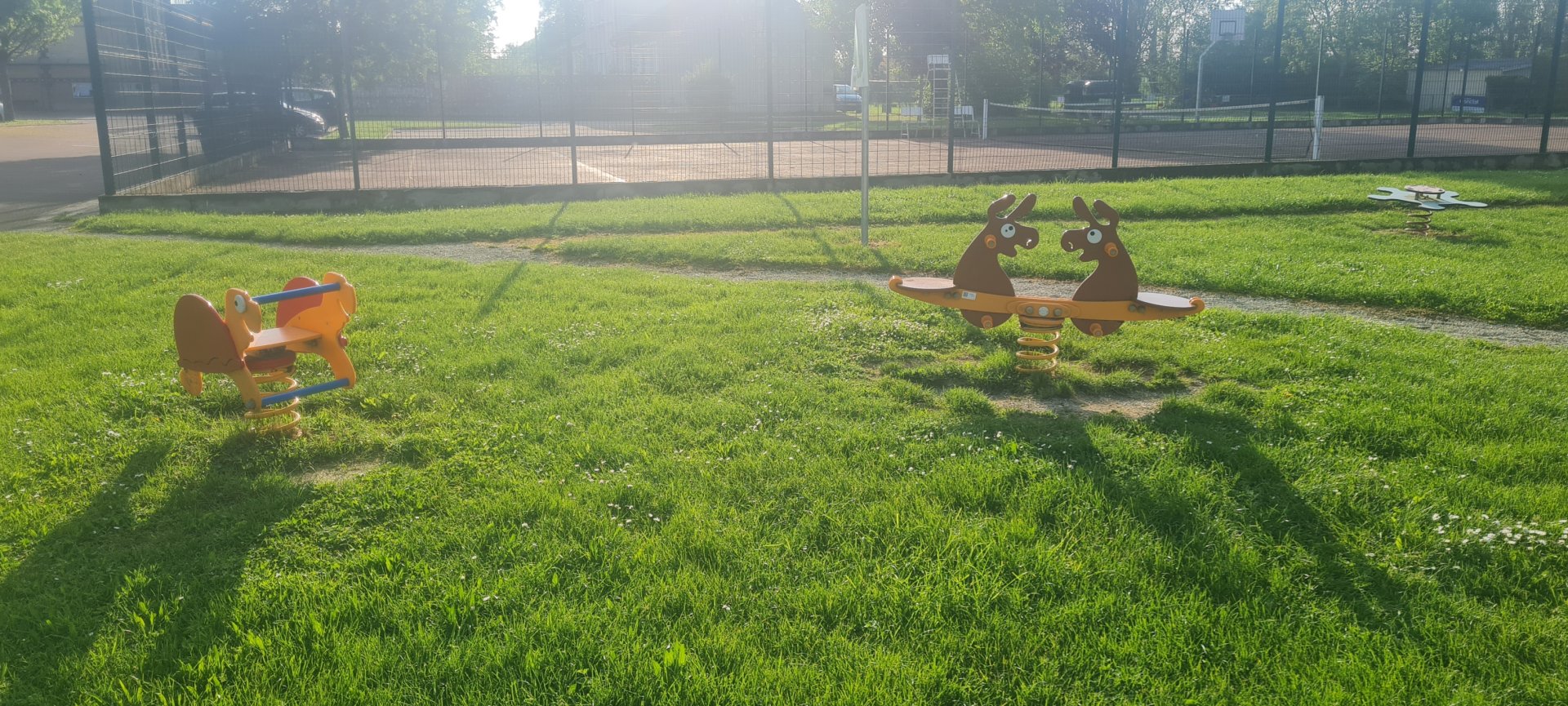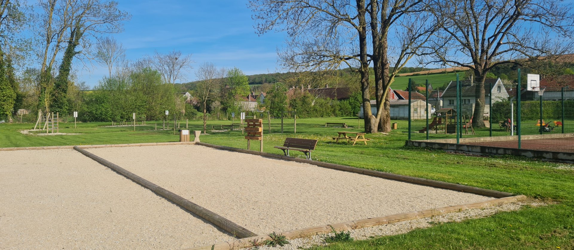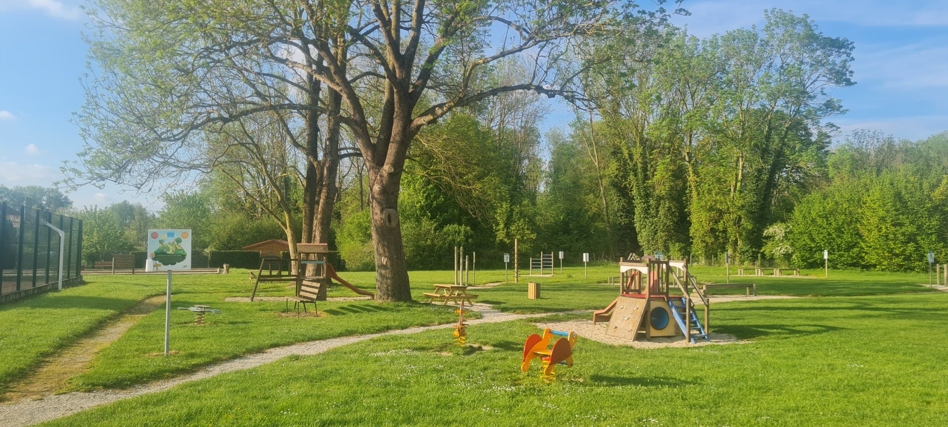Au même endroit pour les plus grands, parcours de santé, courts de tennis avec paniers de basket, table de ping-pong, terrains de pétanque, foot.