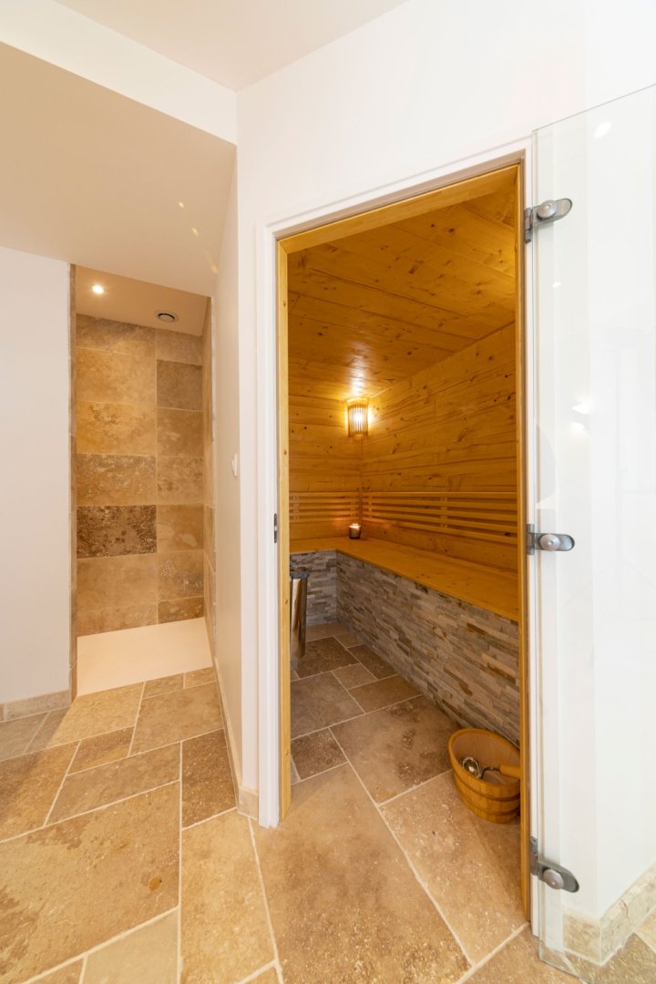 You will also appreciate the stone and wood atmosphere of the Finnish sauna.
