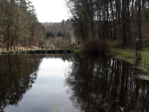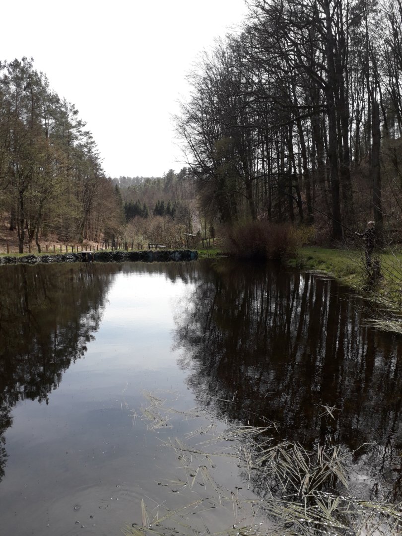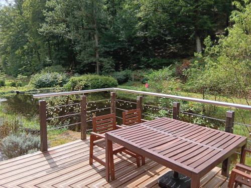 L'étang est situé à dix mètres du chalet. Il a une surface de 4 ares.