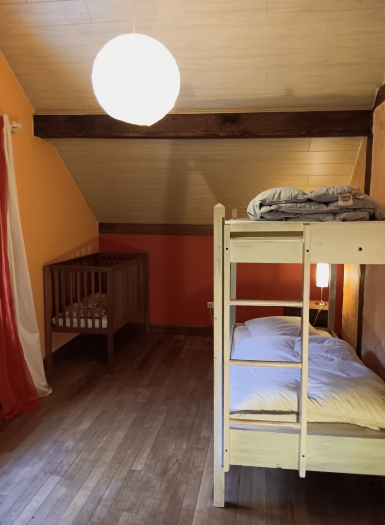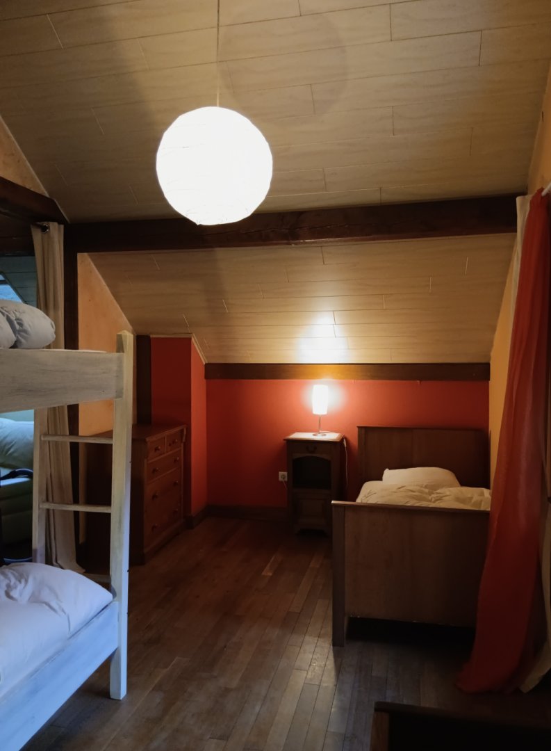 - chambre 2 : trois lits une personne (un lit simple-1 lit superposé)