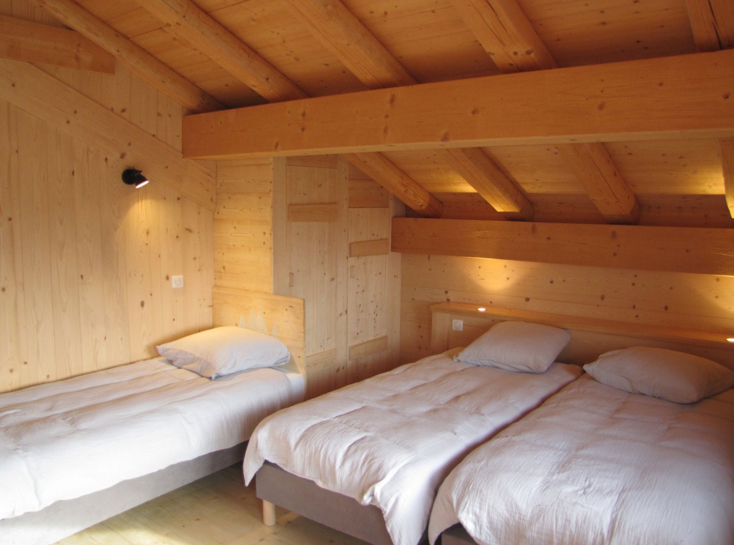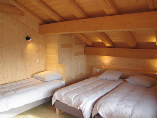 Au 1er étage : deux chambres avec chacune 3 lits de 90x200 cm (possibilité de regrouper les lits sur demande), une quatrième chambre avec un lit de 180x200.
