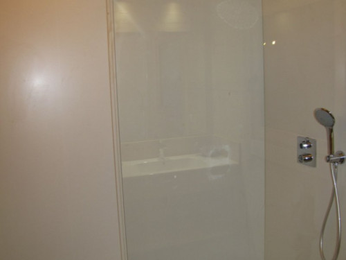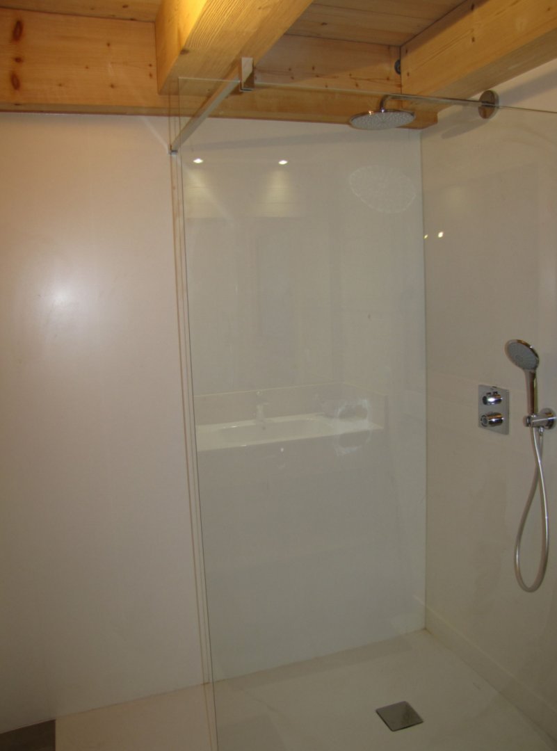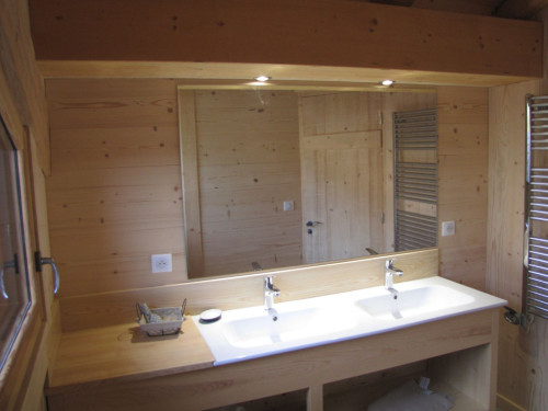 Salle d'eau avec double vasques, douche à l'italienne et WC.