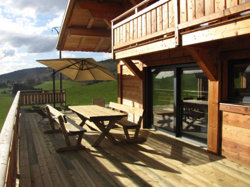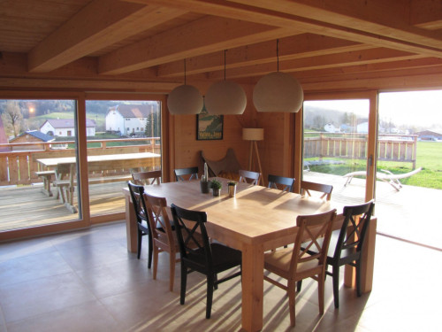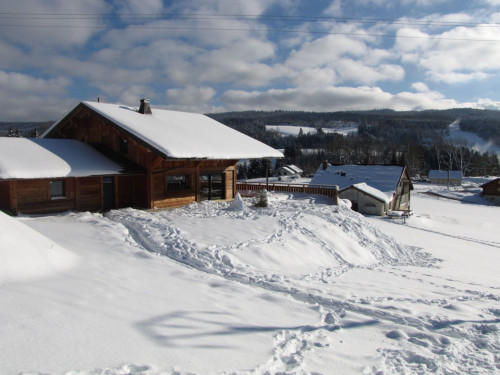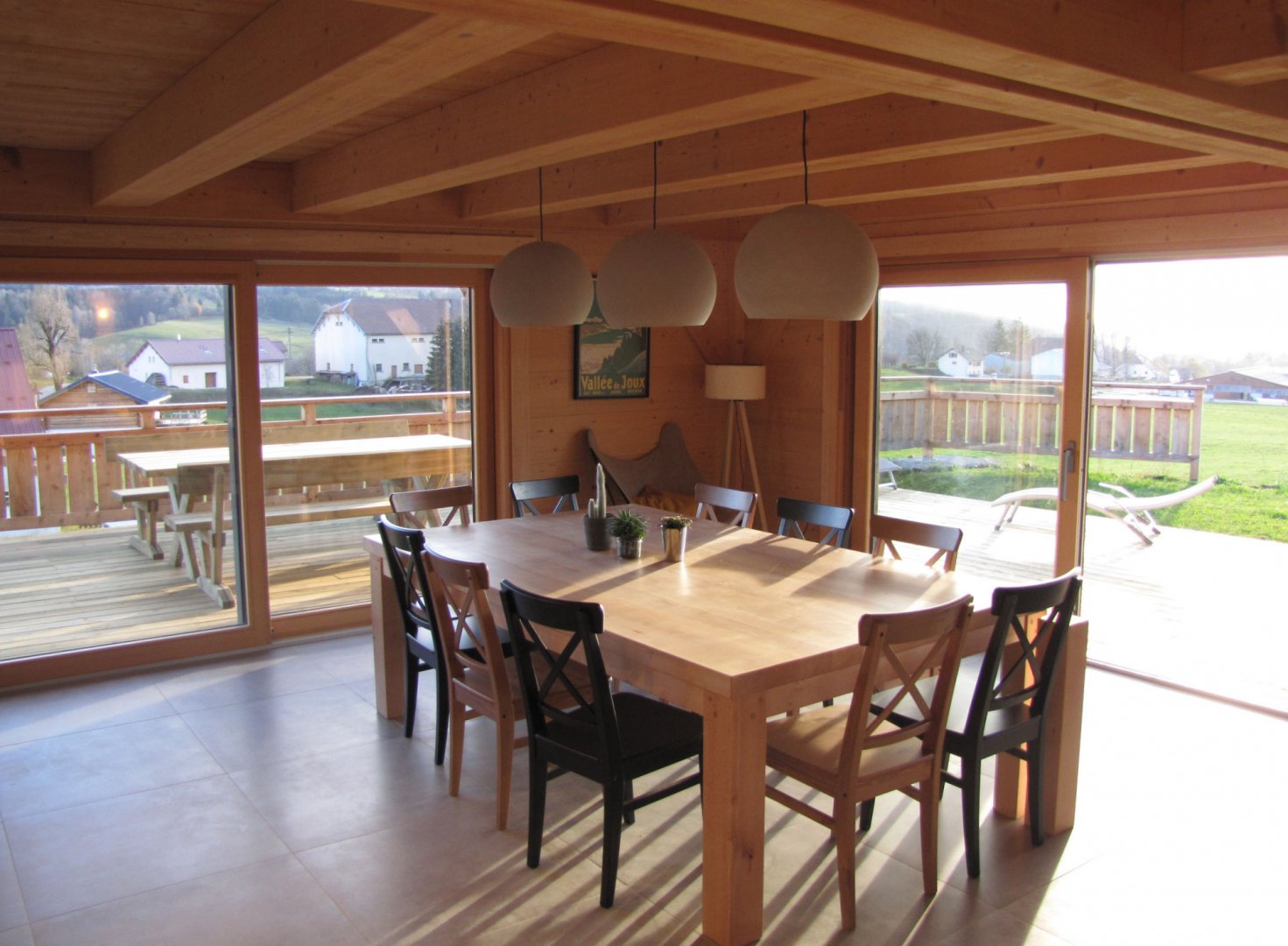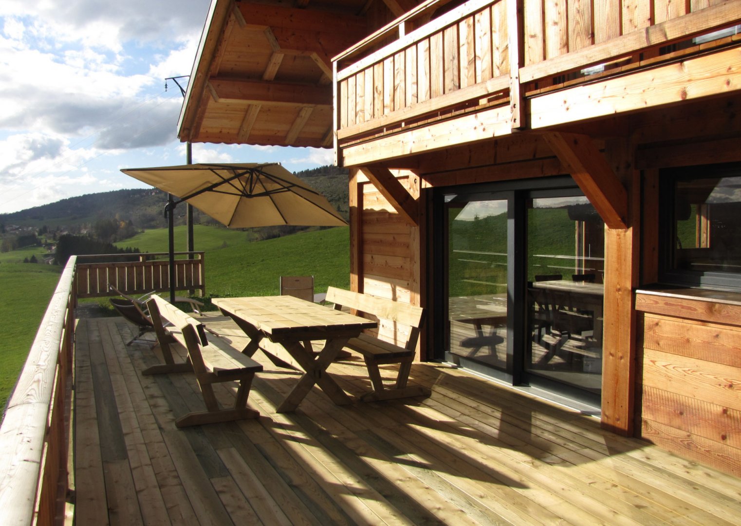 Chalet au cœur du parc naturel régional du Haut-Jura, sur les hauteurs du village dans le hameau du Rocheret, chalet indépendant offrant une belle vue sur la vallée de la Saine et la nature environnante.