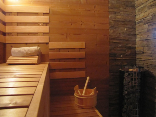 Au sous-sol vous aurez accès à l'espace détente avec deux fauteuils relaxants, sauna et douche à l'italienne.
