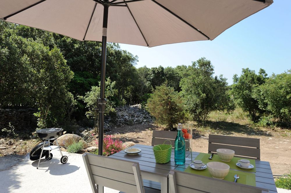 À l'extérieur de chaque mini villa vous aurez un barbecue privé, avec salle à manger d'extérieur sous une pergola ombragée.