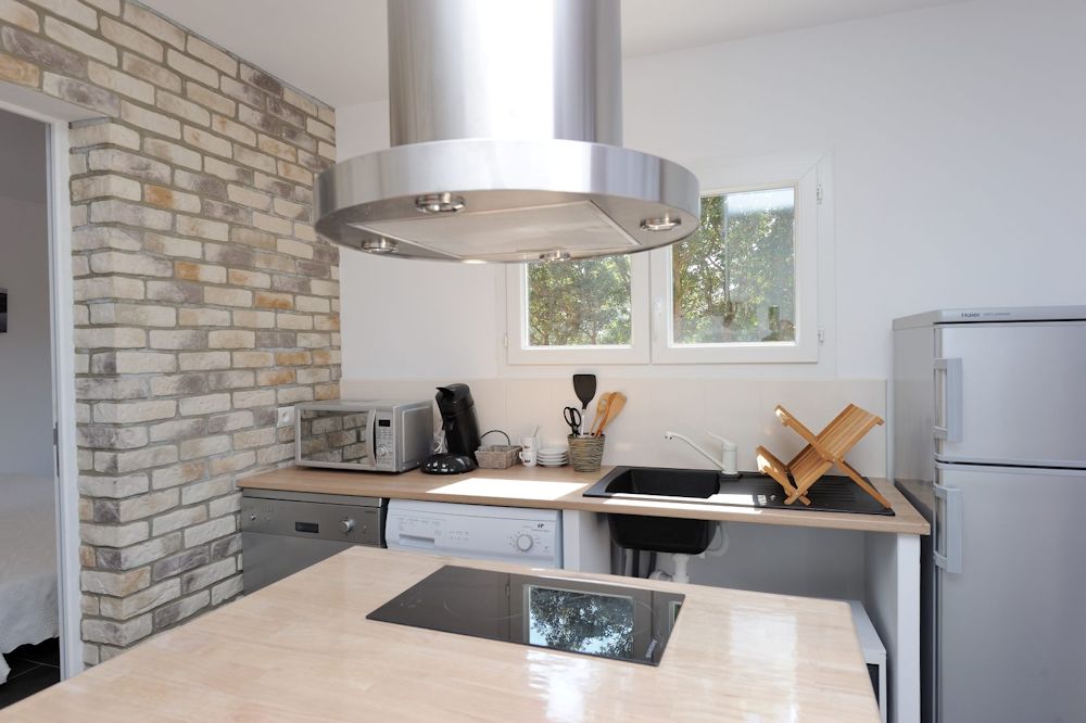 Chaque mini villa et chalets sont complètement climatisée, avec une cuisine américaine aménagée avec frigo, congélateur, gazinière, four micro-onde, machine à café et lave-linge, 1 chambre avec lit 140 x 190 et une mezzanine avec 2 lits 90 x 190. (pour les mini villa)