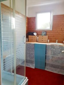 Disposant d’une terrasse et offrant une vue sur le jardin, cette maison de vacances comprend 1 chambre, un salon, une télévision à écran plat, une cuisine équipée avec un réfrigérateur et une plaque de cuisson, ainsi que 1 salle de bains avec une douche.