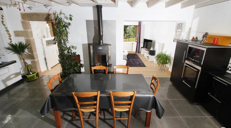 Ground floor: kitchen / living room (wood stove), living room, bathroom, toilet.