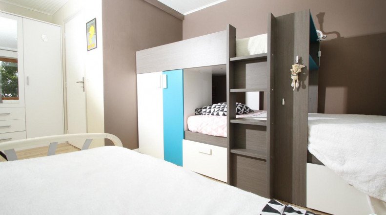 Floor: 3 bedrooms (1x160, 1x160, 3x90 with a bunk), bathroom, toilet.