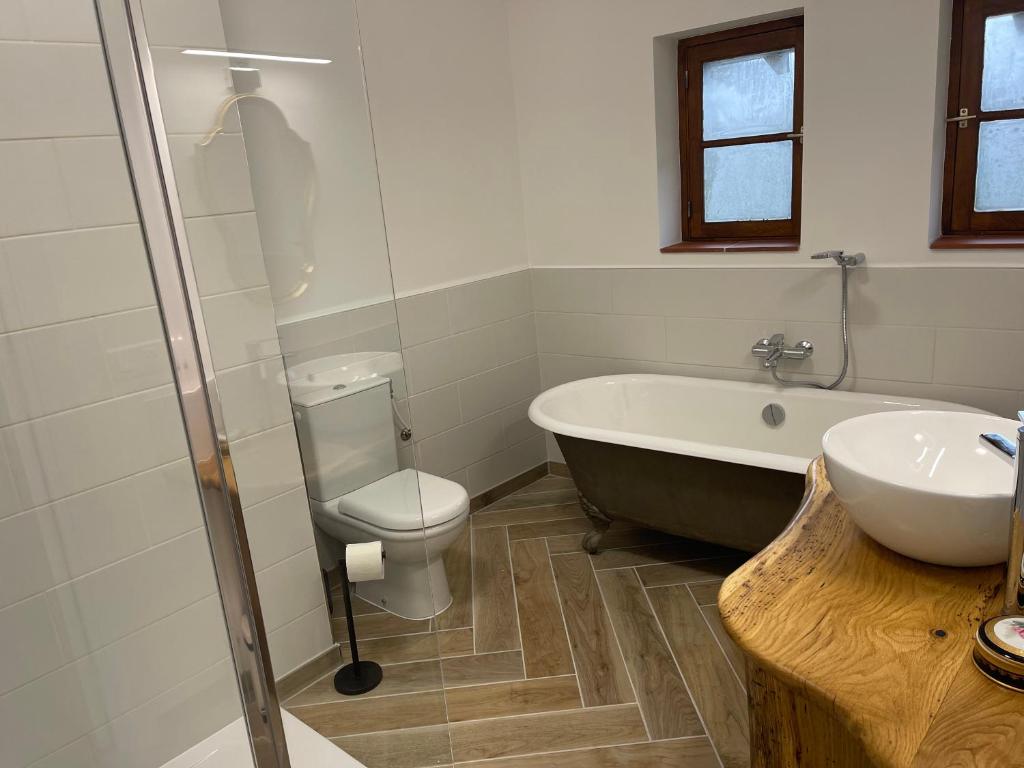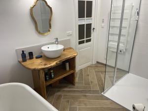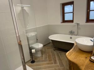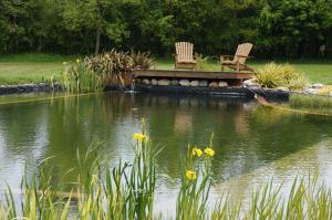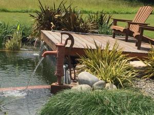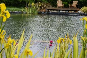 The spacious holiday home with a terrace and lake views has 2 bedrooms, a living room, a flat-screen TV, an equipped kitchen with a dishwasher and an oven, and 2 bathrooms with a walk-in shower. Towels and bed linen are offered in the holiday home. There is also a seating area and a fireplace.