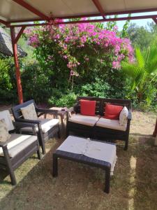 The apartment is equipped with 1 bedroom, 2 bathrooms, bed linen, towels, a flat-screen TV with satellite channels, a dining area, a fully equipped kitchen, and a terrace with mountain views. Guests can enjoy a meal on an outdoor dining area while overlooking the garden views. For added privacy, the accommodation has a private entrance and is protected by full-day security.