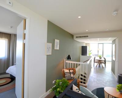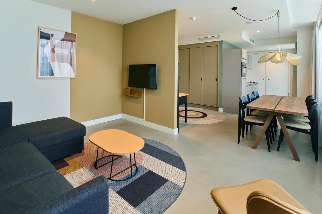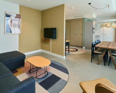 Each apartment at Cityden BoLo has their own kitchen, private bathroom with a rain shower and toilet, living room with flatscreen TV and separate seating area. The one- and two-bedroom apartments even offer a large living room with extra sofa bed and a separate toilet.