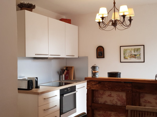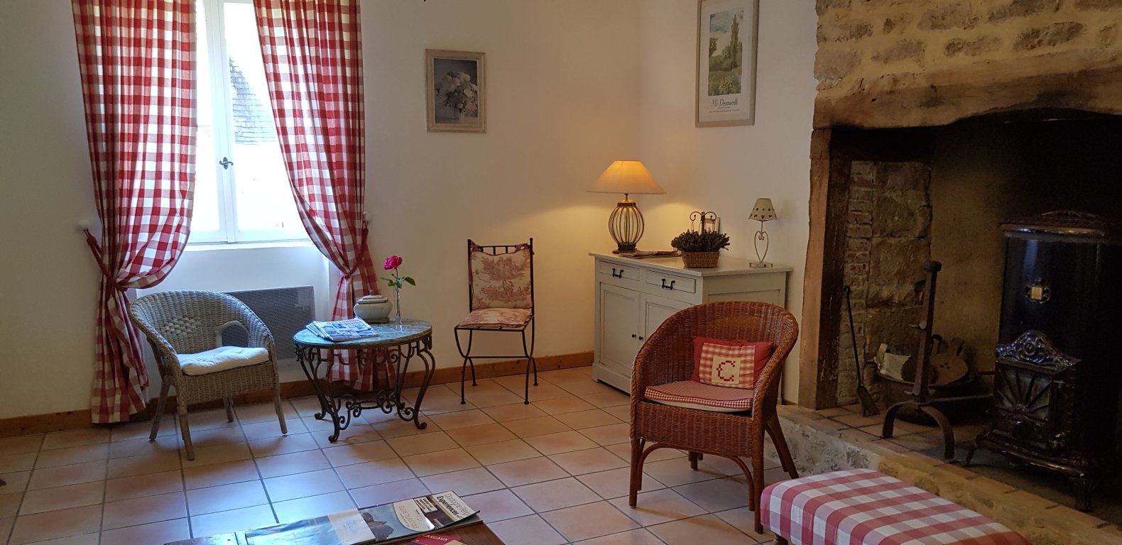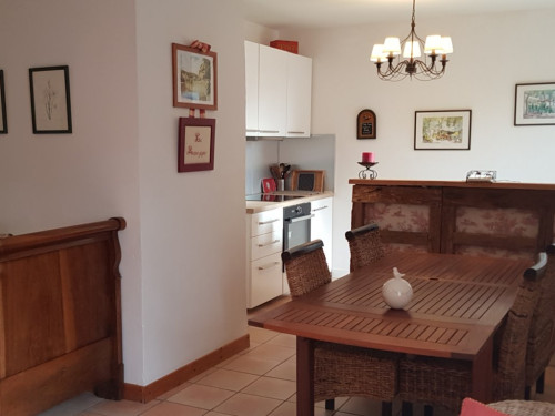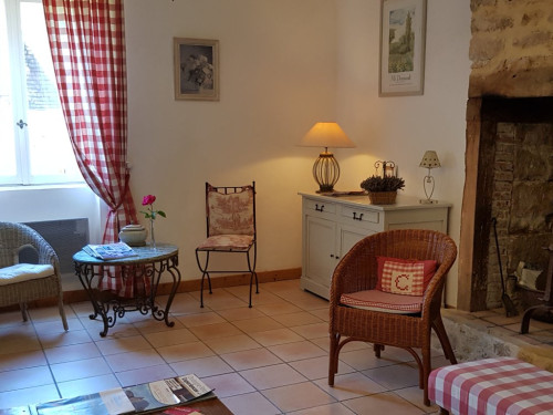 Au rez-de-chaussée, la pièce à vivre de 40 m² est composée d’un coin salon avec grande cheminée, d’un coin repas et d'une cuisine tout équipée.