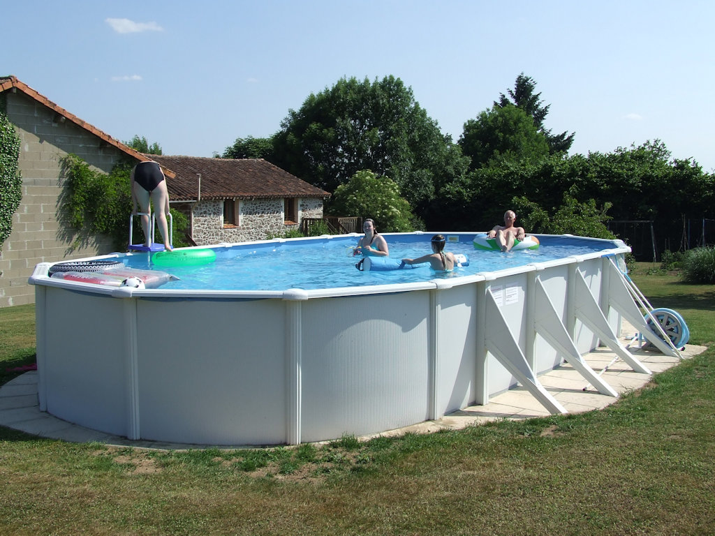 Piscine commune de 9,15 m sur 5 m, trampoline, balançoires, ping-pong et baby-foot sur place.