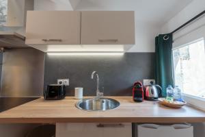 Cet appartement comporte 1 chambre, une cuisine entièrement équipée avec un réfrigérateur et un micro-ondes, ainsi que 1 salle de bains avec une douche et un sèche-cheveux. Des serviettes et du linge de lit sont à votre disposition.
