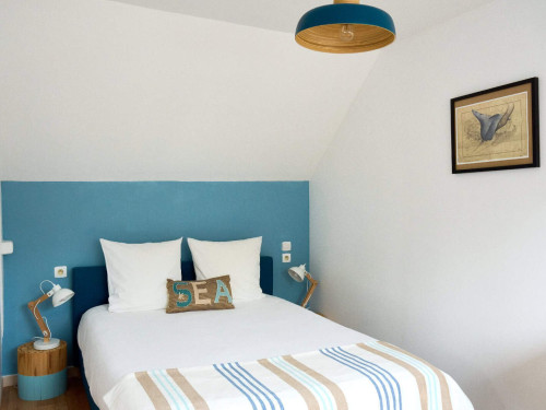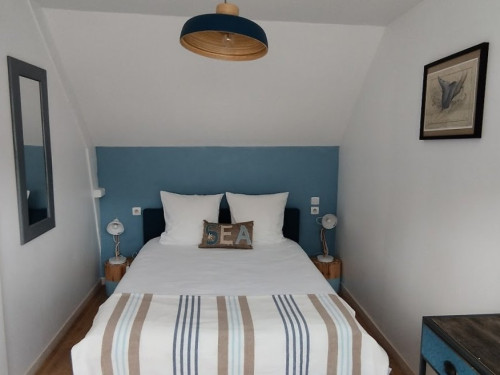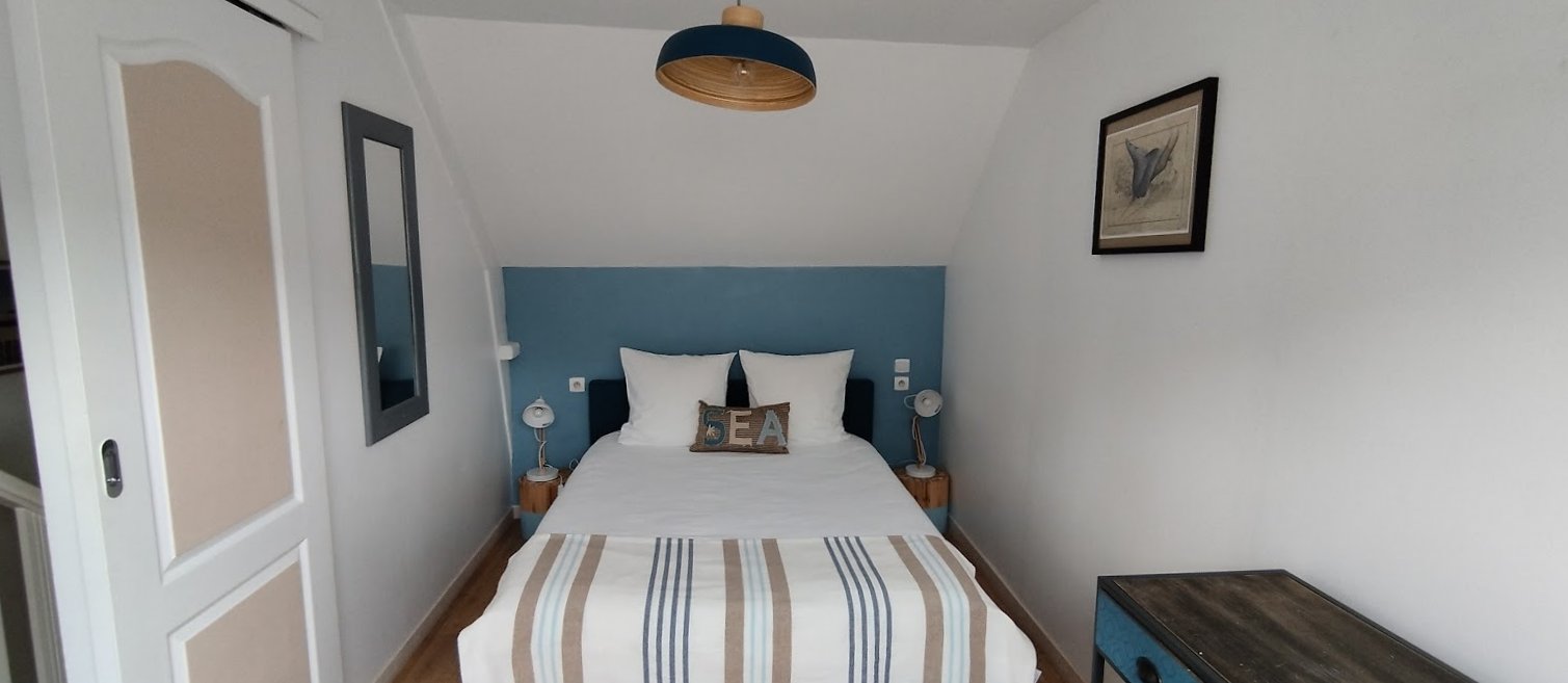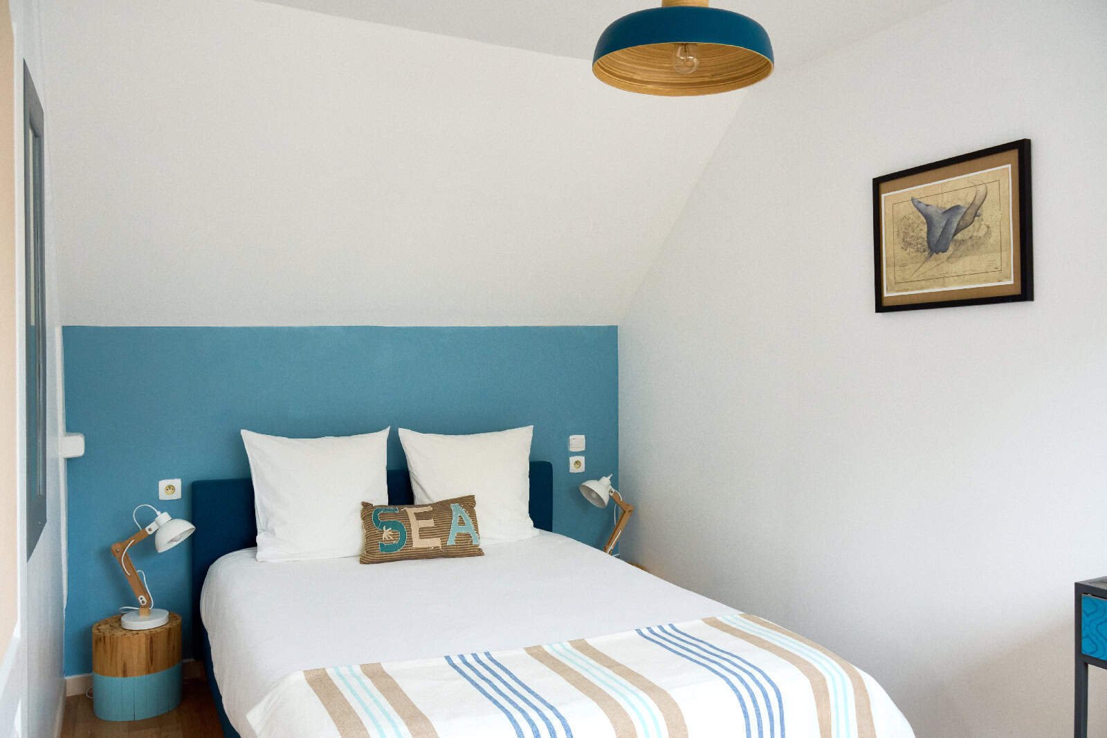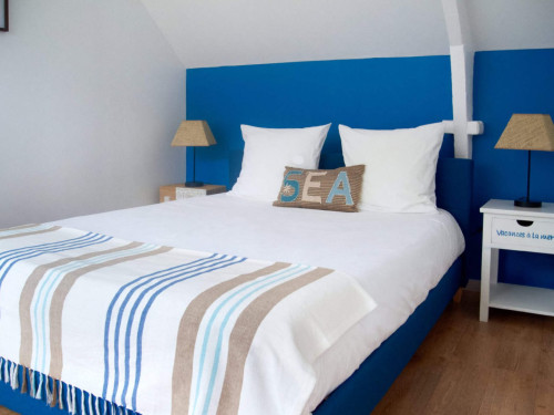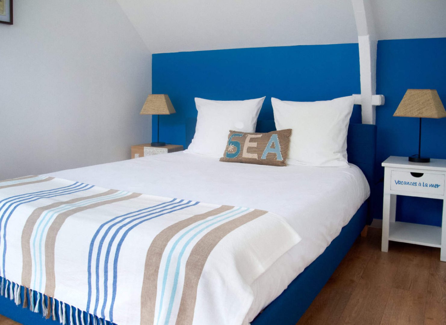 The 50 m² cottage, fully renovated and furnished, offers a comfortable, modern and bright interior, with touches of blue and sand.
