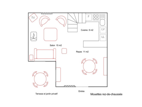 Le gîte est exposé sud/est. Vous pouvez profiter de sa terrasse avec accès direct de la cuisine bien équipée.