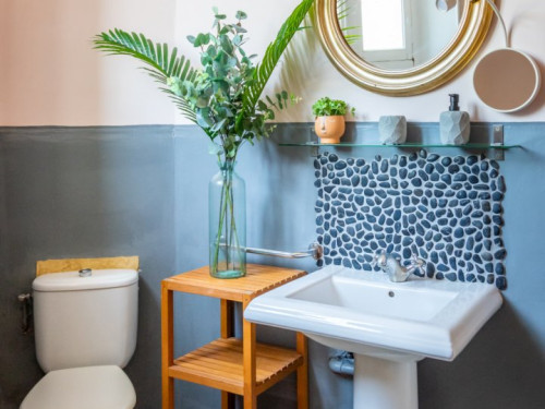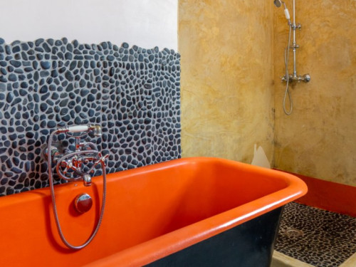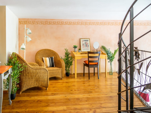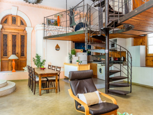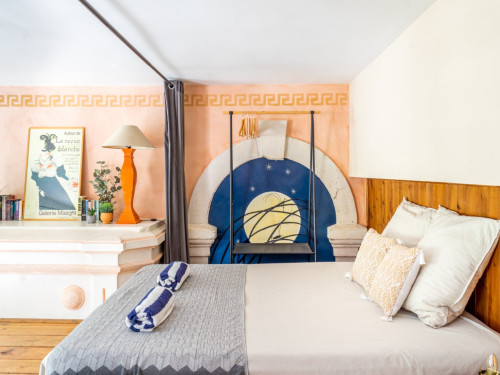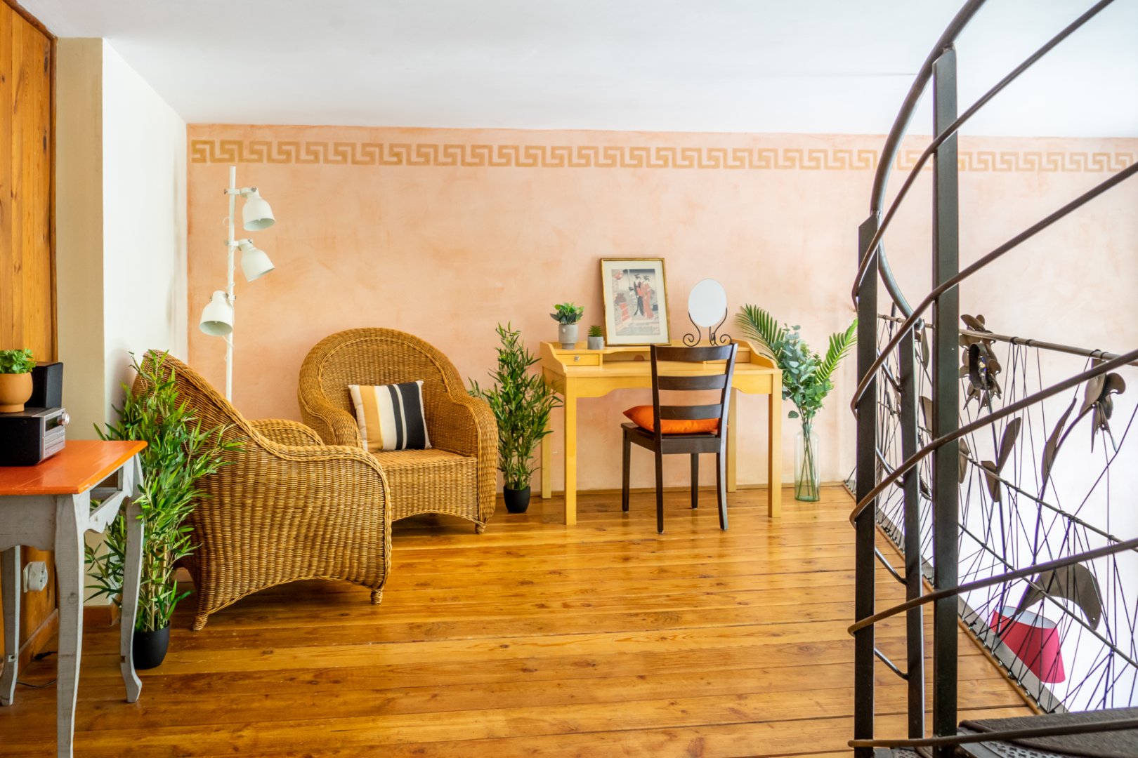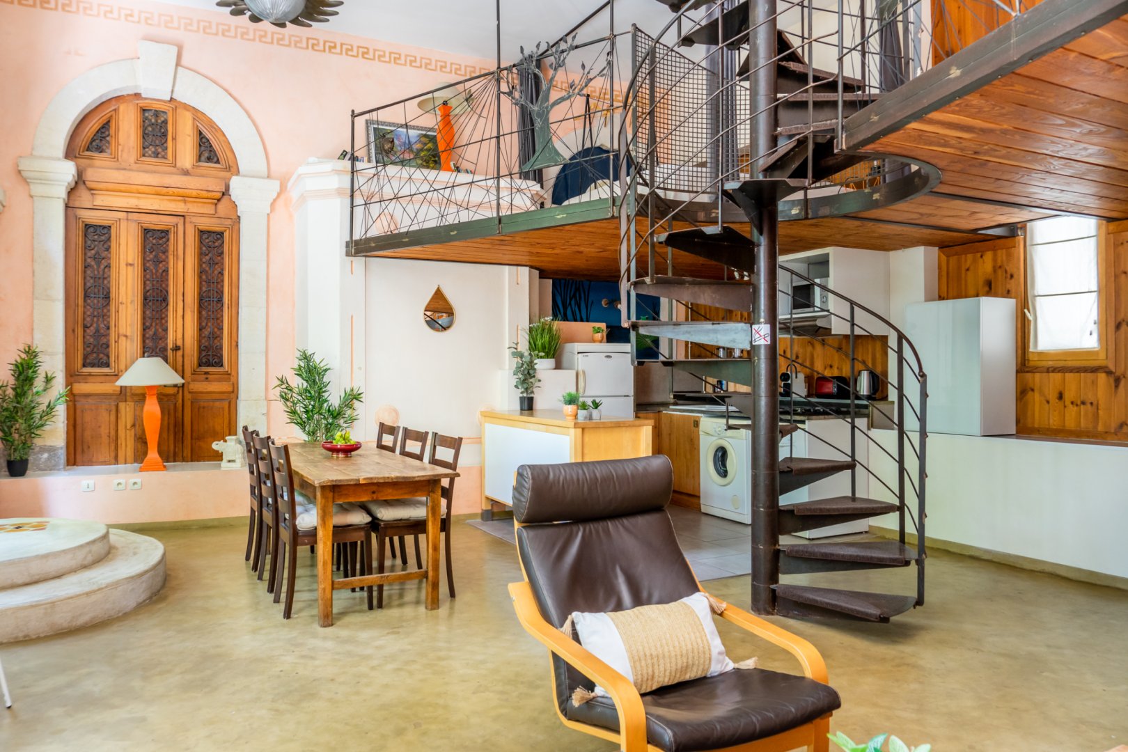 Marguerite dispose d'un grand espace avec hauts plafonds, une cuisine bien équipée, deux chambres doubles avec hauts plafonds dotées de grandes salles de bain privatives uniques, et un lit double sur une élégante mezzanine.
