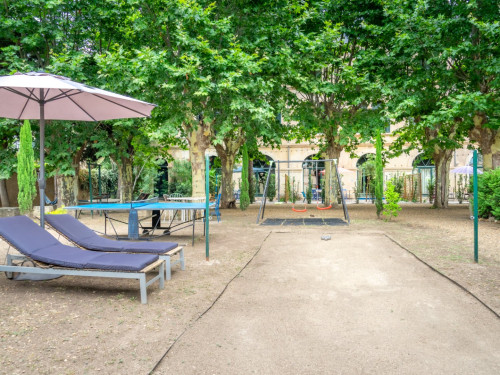 Vous avez accés à votre jardin privé et à la cour ombragée par de vieux platanes. Il y a une belle piscine, cours de petanque, une aire de jeux et une table de ping-pong pour vous divertir.
