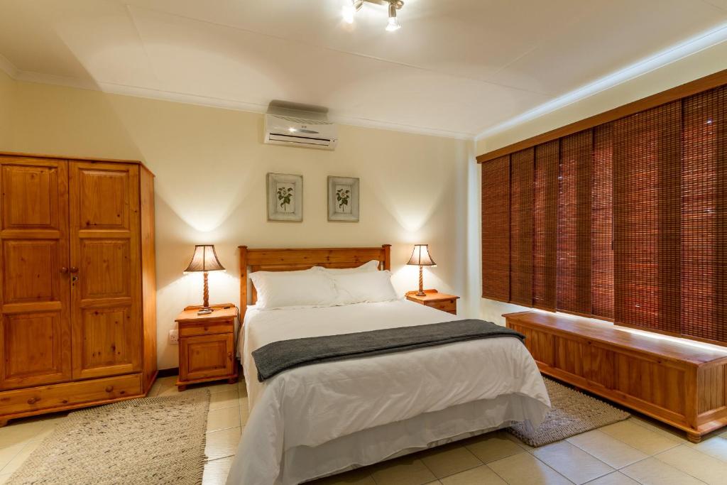 This luxury self catering chalet features a master bedroom with a queen-size bed, private bathroom with shower, fully equipped kitchen, a lounge and dining area and covered veranda. Linen, towels, gowns, hairdryer, crockery, cutlery and coffee and tea facilities are provided. Guests can use the BBQ facilities around the pool area.