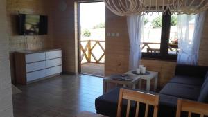 Die Unterkunft Czarcie Chatki bietet ihren Gästen eine Terrasse, Seeblick, einen Sitzbereich, einen Flachbild-TV, eine voll ausgestattete Küche mit einem Kühlschrank und einer Herdplatte sowie ein eigenes Badezimmer mit einer Dusche und kostenlosen Pflegeprodukten. Es gibt einen Toaster sowie eine Kaffeemaschine und einen Wasserkocher.
