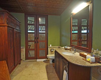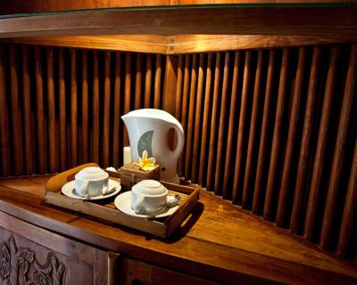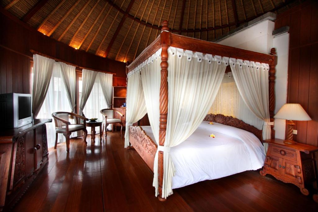 Overlooking tropical gardens, the spacious air-conditioned rooms are fitted with elegant wooden flooring and a four-poster bed. Each is equipped with a cable TV, personal safe and tea/coffee making facilities.