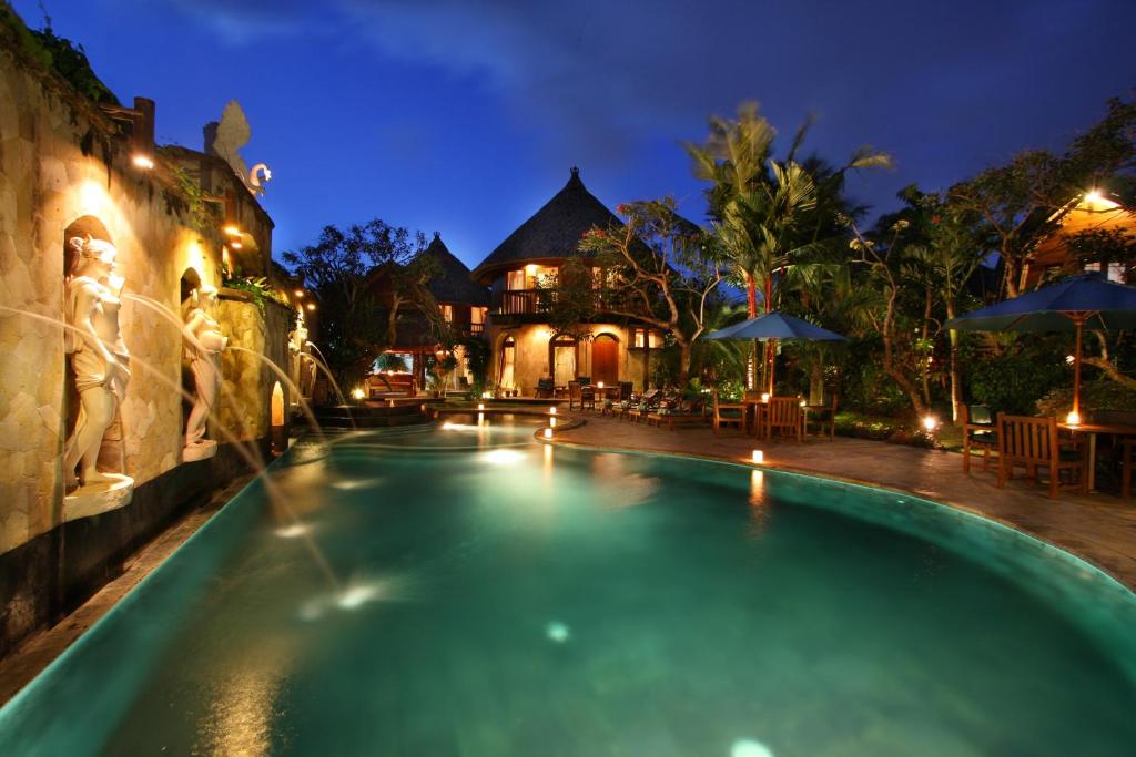 Country-style Balinese living can be experienced at Dewani Villa Resort, surrounded by rice fields and coconut trees in Umalas and Kerobokan areas. It has free Wi-Fi and an outdoor pool.