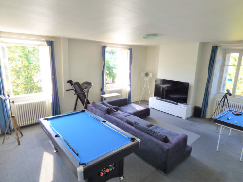 - 1 côté FUN avec le POOL HOUSE : bâtiment de 295 m² avec piscine intérieure, bar/cuisine d'été, terrasse, douches. Et un CHALET (chauffé) juste à côté avec 2 pièces (mode dortoirs la nuit)