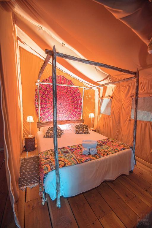 Le camp de tentes comporte une aire de jeux pour enfants.