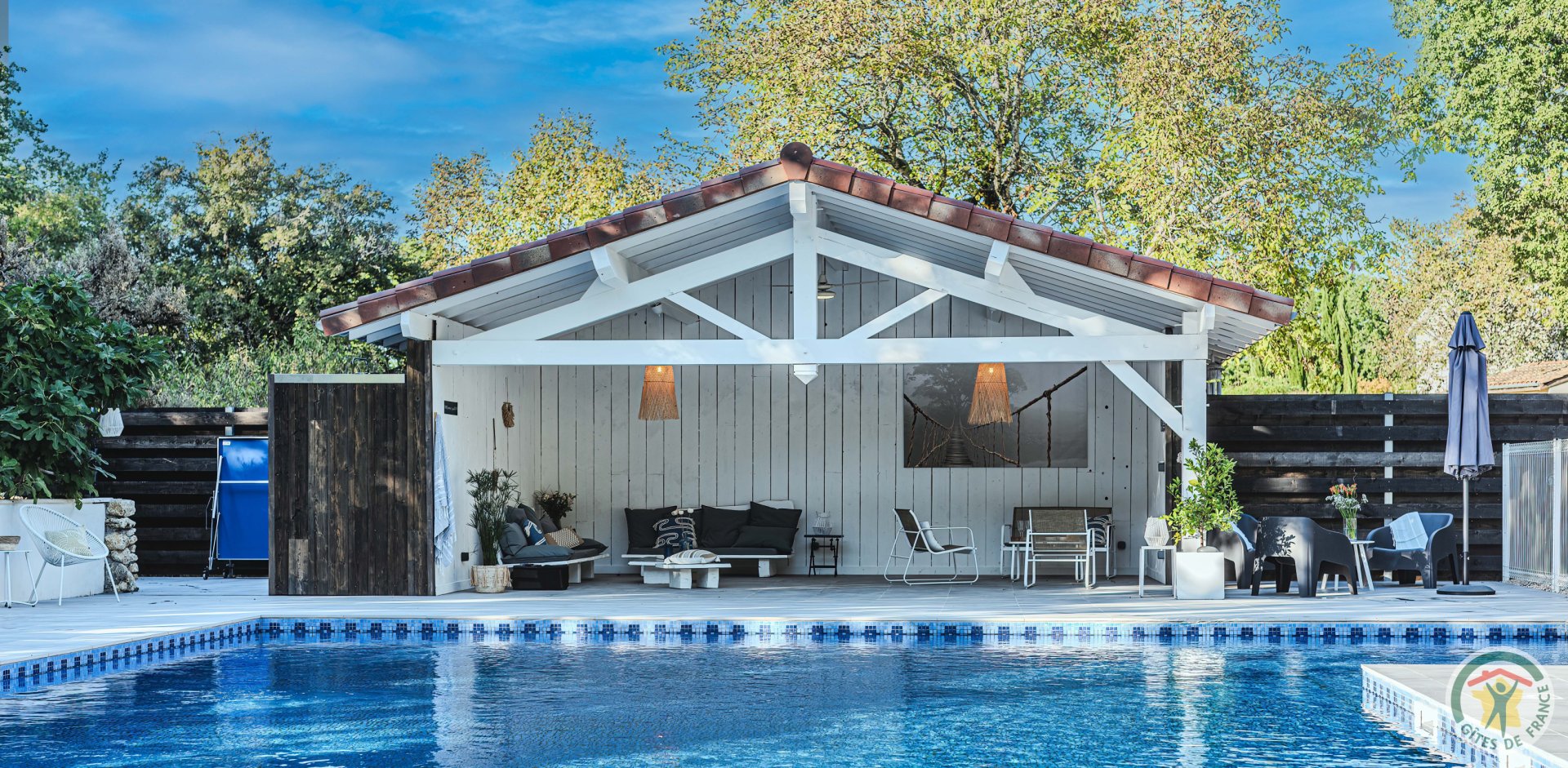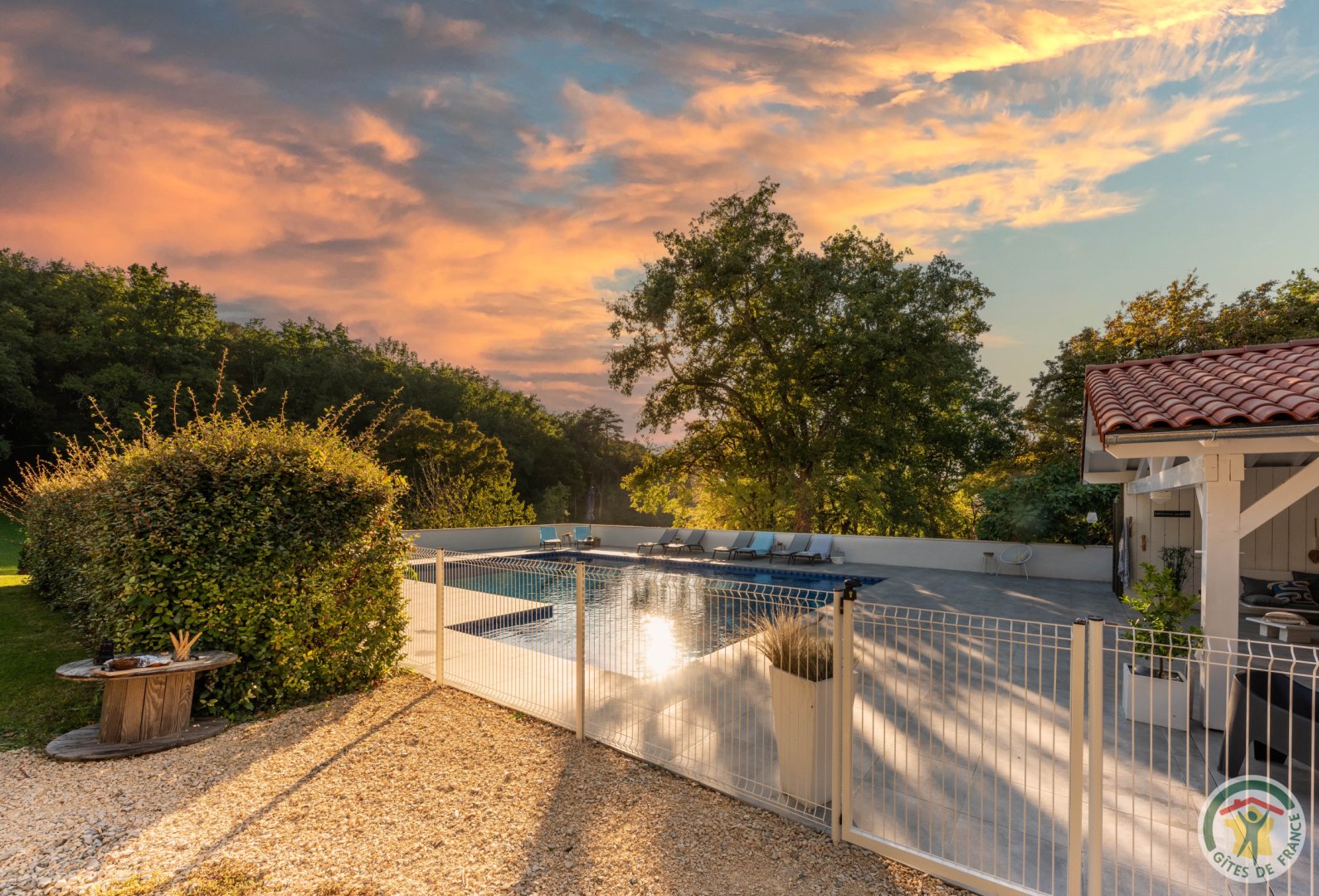 Piscine commune à partager avec un autre gîte avec alarme et clôture ouverte de juin à septembre.