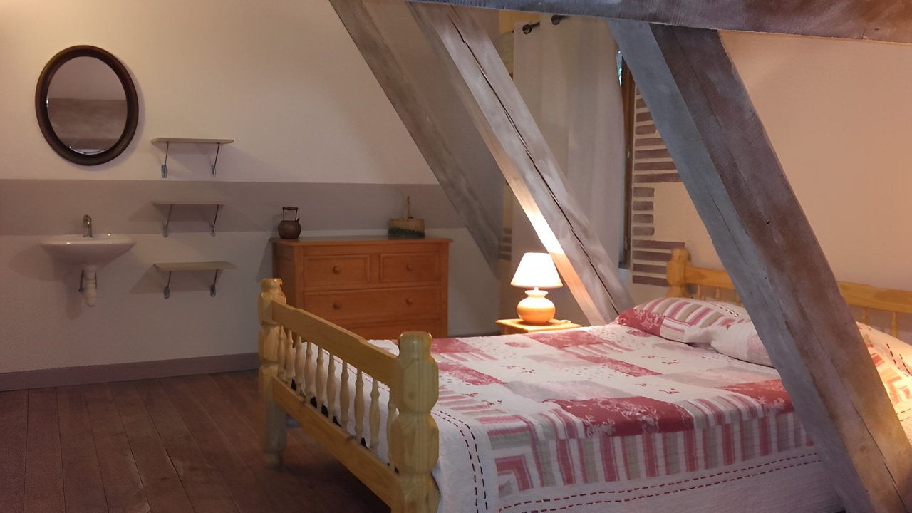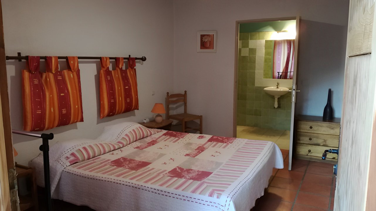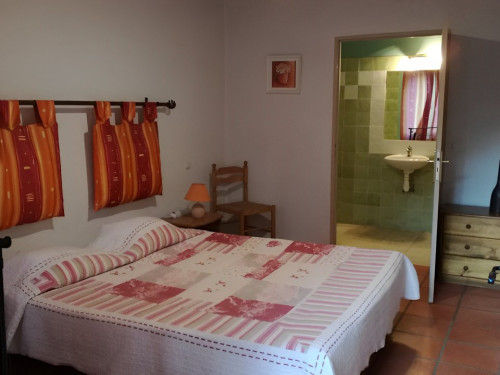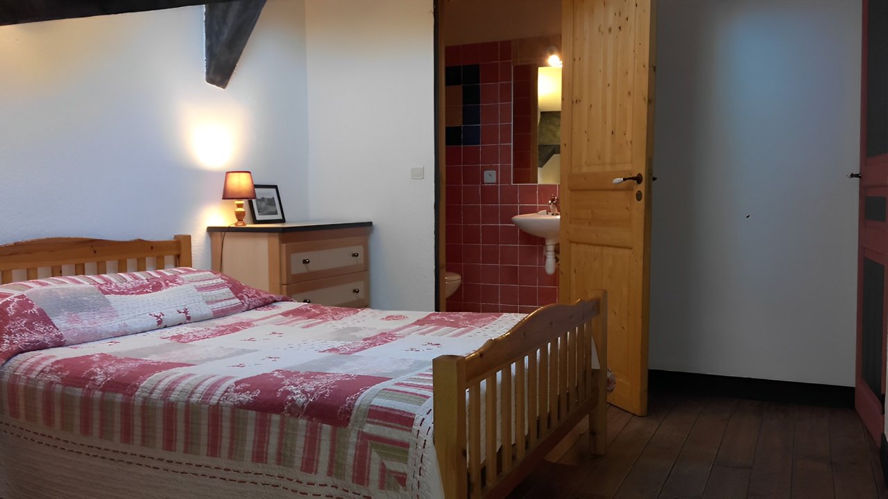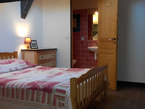 • 1 chambre avec accès personne à mobilité réduite au rez-de-chaussée avec lit double avec sa salle de bain privative et ses WC