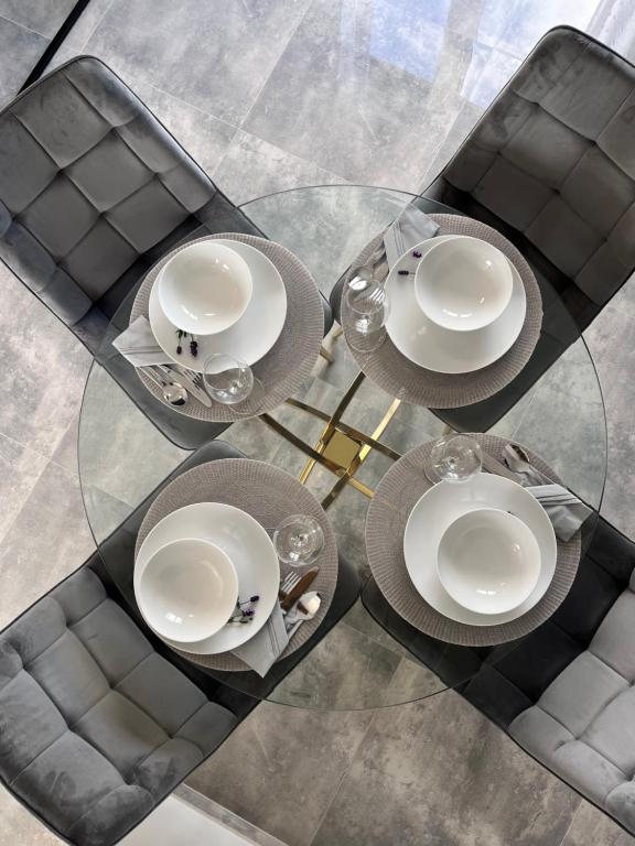The holiday home provides guests with a terrace, lake views, a seating area, a flat-screen TV, a fully equipped kitchen with a dishwasher and an oven, and a private bathroom with walk-in shower and a hair dryer. A toaster, a fridge and stovetop are also featured, as well as a coffee machine and a kettle. At the holiday home, the units are equipped with bed linen and towels.