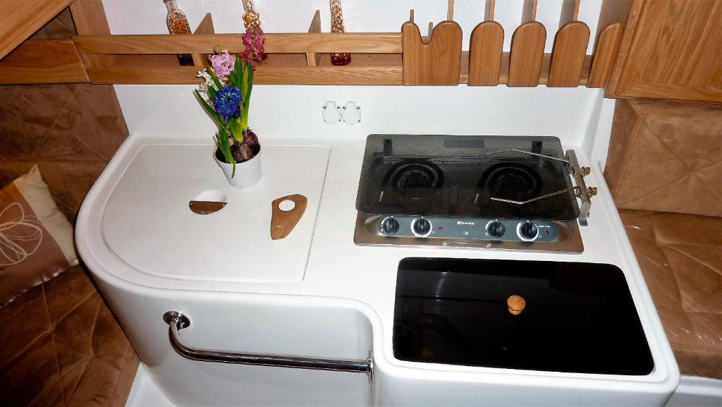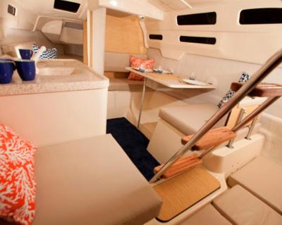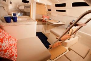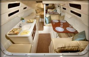 This boat has capacity for 2 extra beds for children's. Guests have on the Marina, an exclusive full bathroom, dining room, a kitchen and a barbecue.