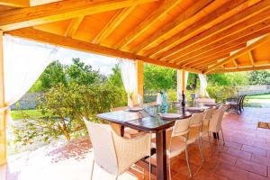 The villa comes with 4 bedrooms, 3 bathrooms, bed linen, towels, a flat-screen TV with satellite channels, a dining area, a fully equipped kitchen, and a terrace with pool views. The property has an outdoor dining area.