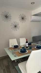 El salón cuenta con zona de comedor, sofás, televisión, WIFI y aire acondicionado. Todas las ventanas tienen mosquitero.