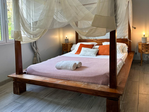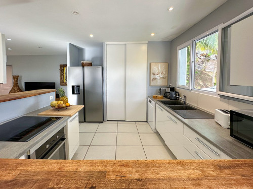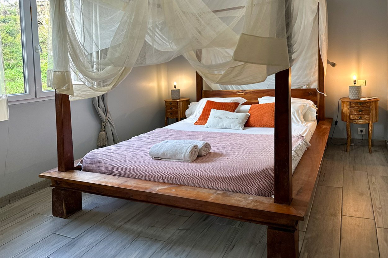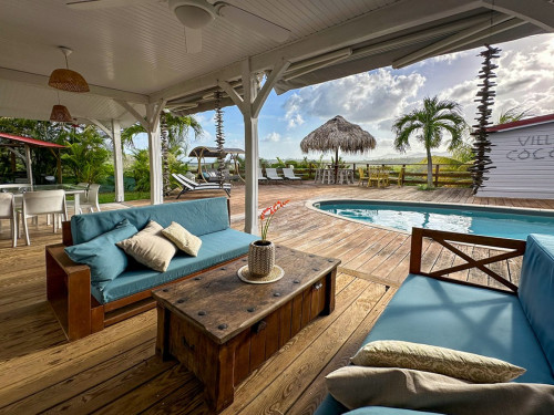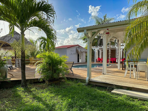 La Villa Cocoon est une élégante villa privée de 140 m², classée 4 étoiles par le label Meublé de Tourisme et 4 clés par le label CléVacances, très confortable et spacieuse pour 10 personnes, à la décoration très zen, alliant le charme des galets et la douceur du bois flotté, avec 5 chambres dont une située dans un ravissant bungalow, un jardin tropical planté de bananiers, cocotiers et autres essences tropicales, et surtout une immense terrasse avec une superbe vue sur la mer qui vous inspireront détente et douceur de vivre.