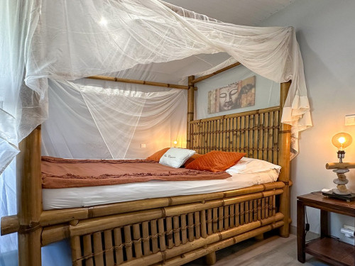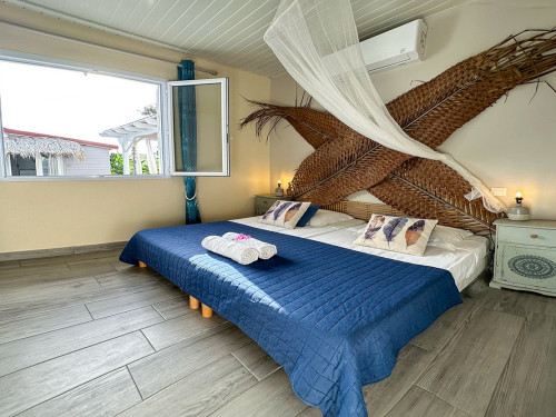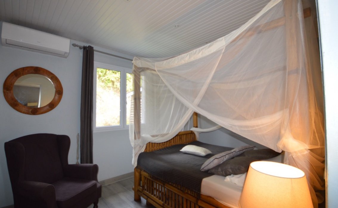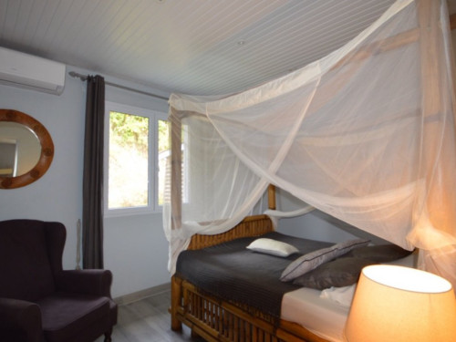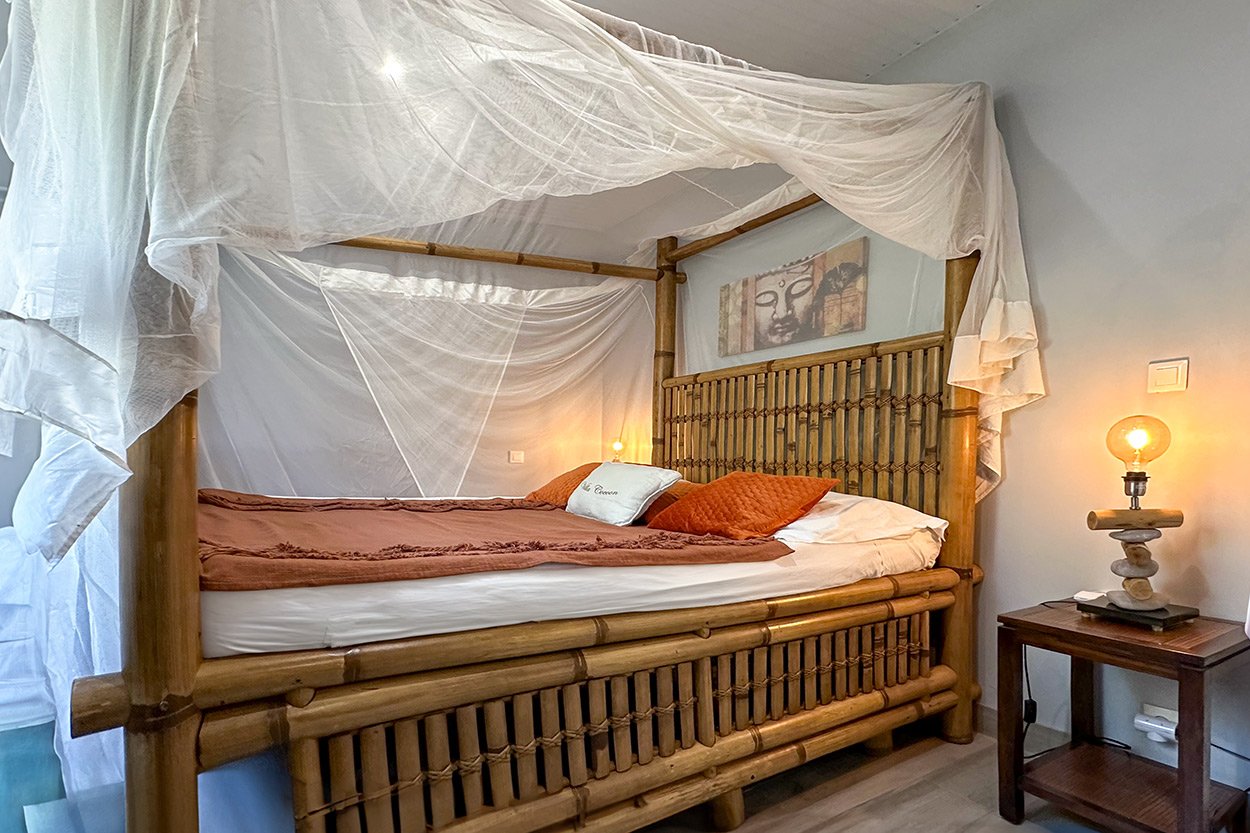 En annexe, vous disposerez d'un bungalow climatisé très romantique situé près de la piscine et ouvert sur la vue mer, composé d'1 chambre avec lit en 160x200 et un coin douche à l'italienne et toilettes.