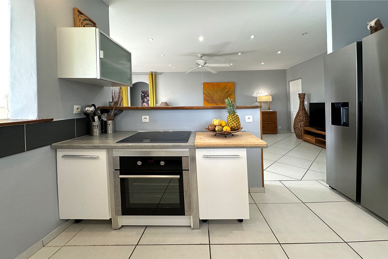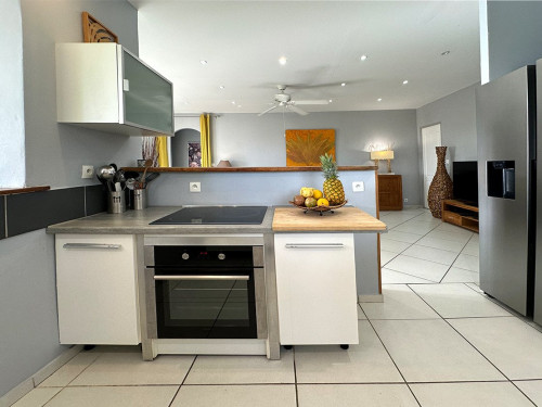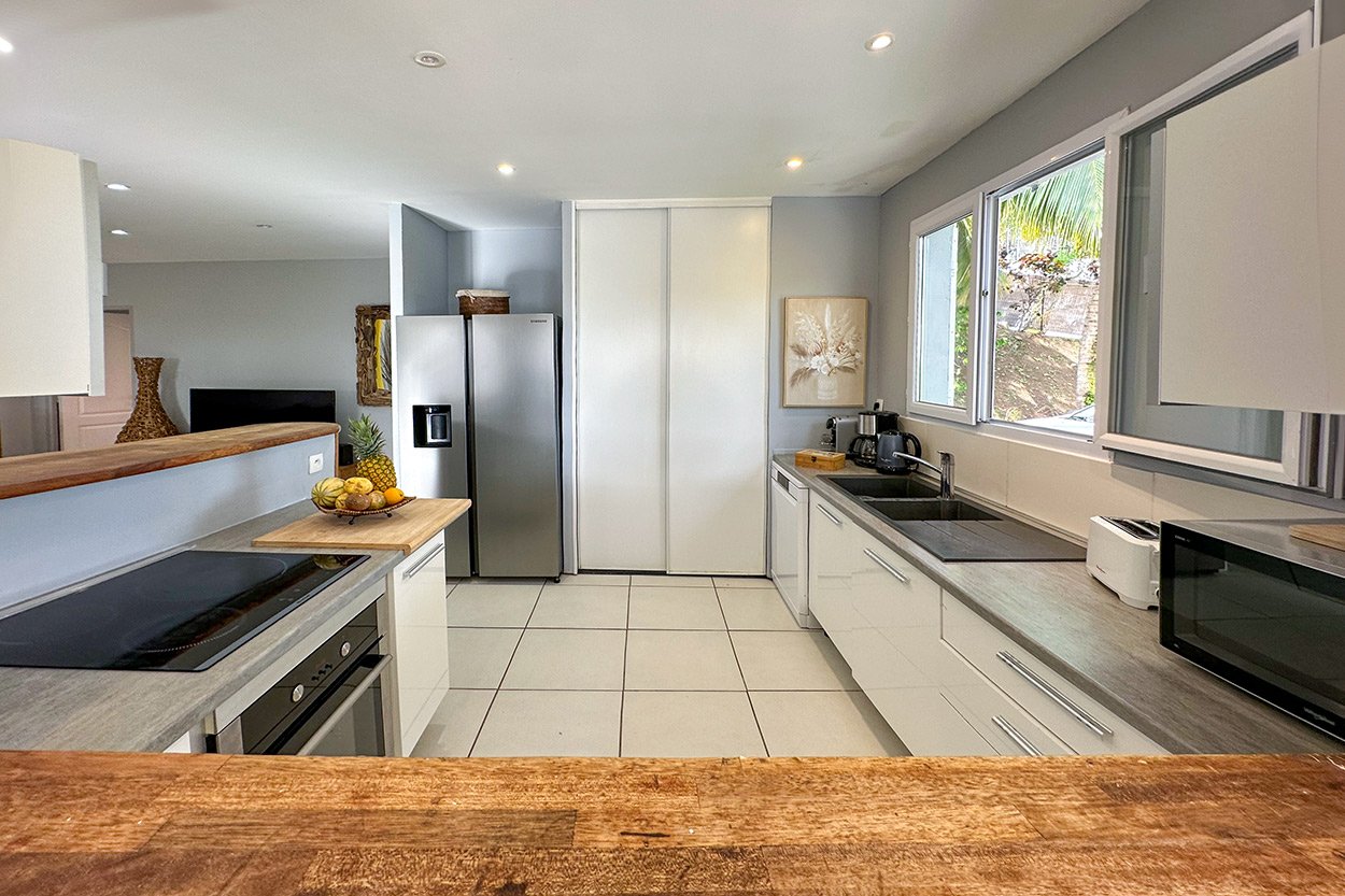 La cuisine, entièrement équipée, et le salon sont ouverts sur la terrasse et font face à cette vue incroyable.
