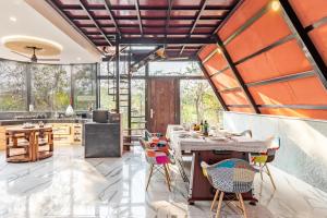Set in Dhauj, ELIVAAS 3 BHK with Treehouse & Pvt Pool - Handa's Gateway offers accommodation with private pool, free WiFi and free private parking for guests who drive. The air-conditioned accommodation is 31 km from Qutub Minar. The accommodation features airport transfers, while a car rental service is also available.
