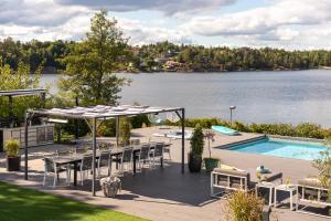 Located in Tyresö, Exclusive Lakefront Mansion with pools in Stockholm offers a patio with sea and lake views, as well as a seasonal outdoor pool, sauna and hot tub. The property features pool and garden views, and is 14 km from Tele2 Arena. There is a sun terrace and guests can make use of free WiFi, free private parking and an electric vehicle charging station.