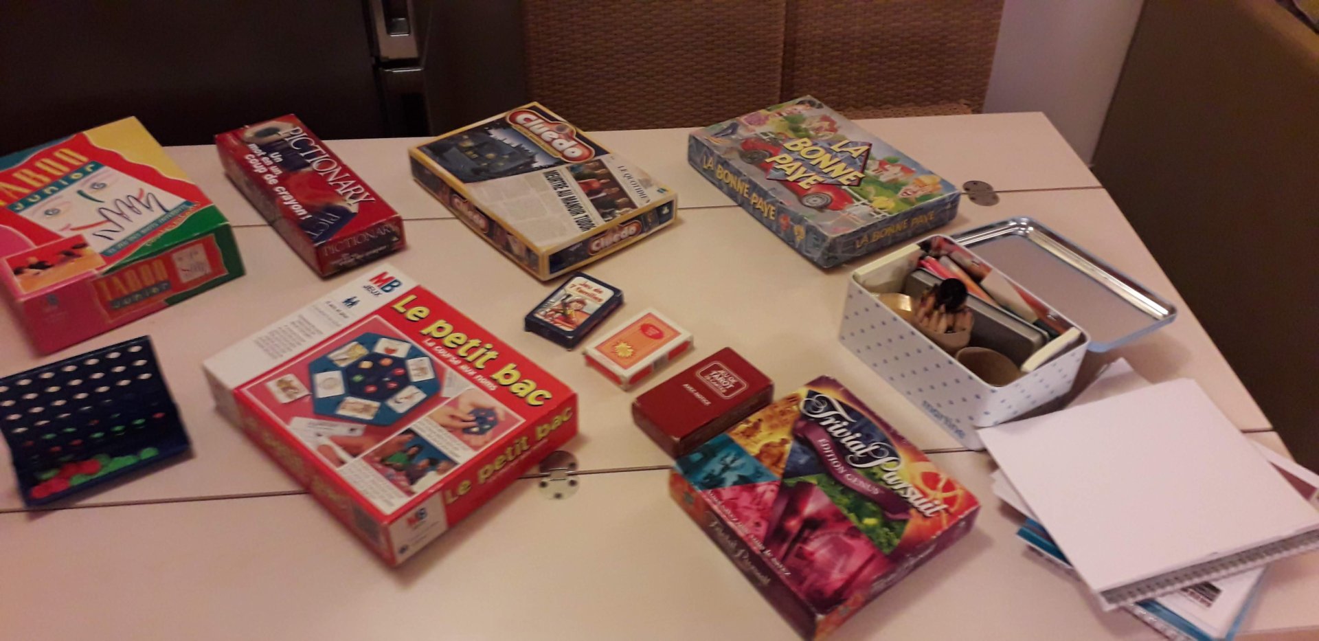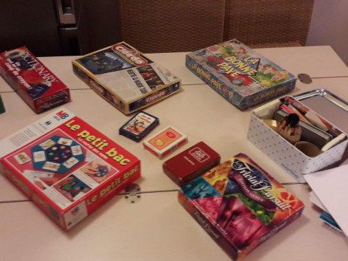 🎾Jeux de société, raquettes ping pong, tennis, boules de pétanque et pour les plus petits feutres crayons et peluche🧸
